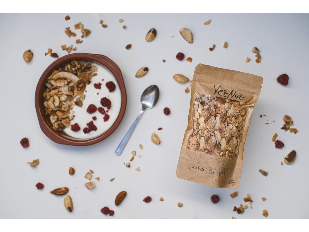 Složení: para ořech, kešu, mandle, kokosový chips, slunečnicové semínko, bio kokosový olej, bio skořice.